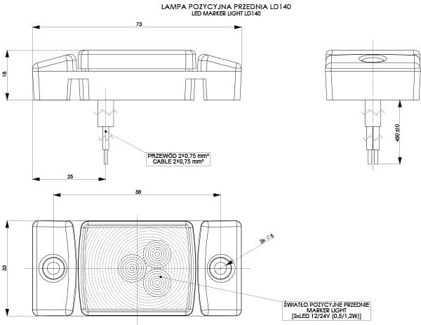 Lampa obrysowa biała led LD140