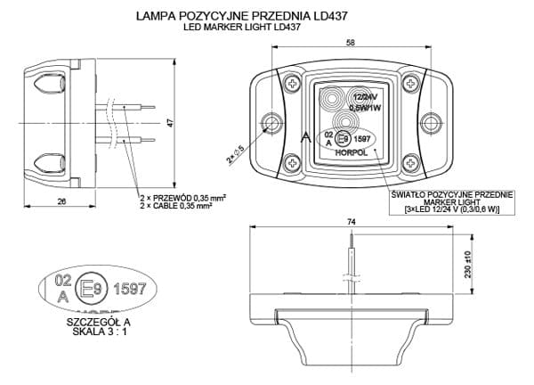 - Przewód: 2×0,35 mm2;