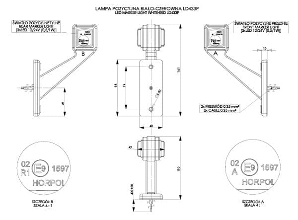 Lampa obrysowa na ramieniu krótkim komplet led LD433
