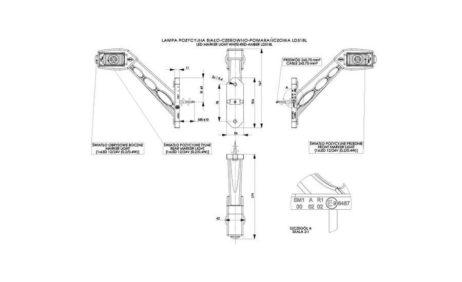 Lampa obrysowa na wysięgniku potrójna długa prawa led LD518P