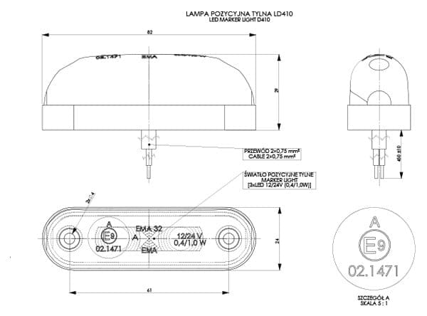 Lampa obrysowa owalna czerwona led LD410