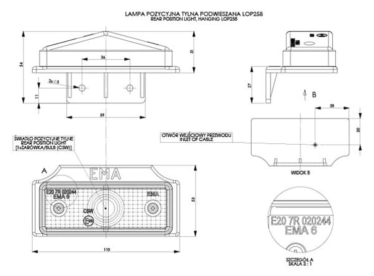 Lampa obrysowa płaska podwieszana czerwona LOP258