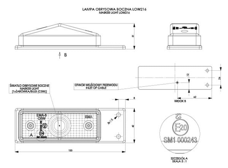 Lampa obrysowa płaska wisząca pomarańczowa LOW216