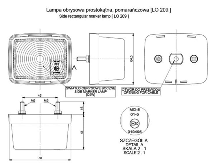 Lampa obrysowa prostokątna pomarańczowa żarówkowa LO209