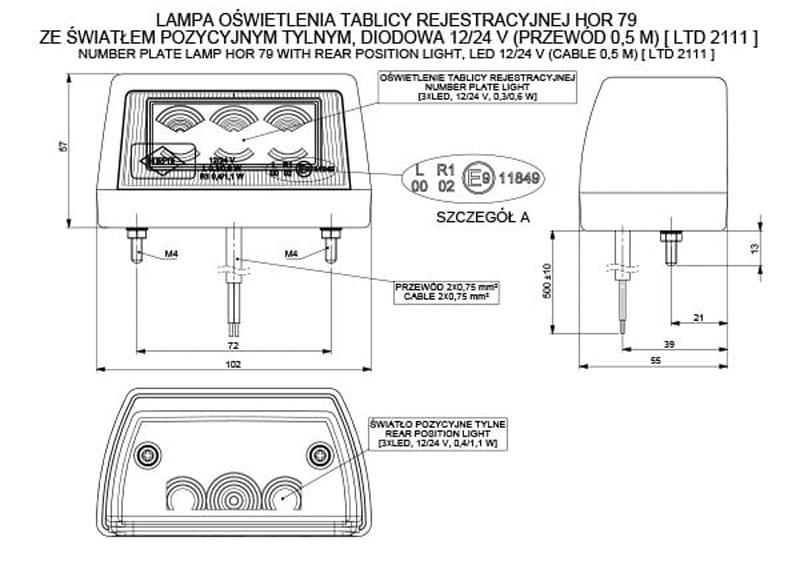 Lampa oświetlenia tablicy rejestracyjnej led LTD2111