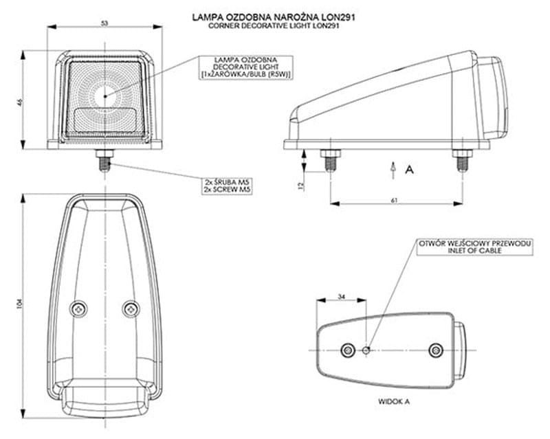 Lampa ozdobna narożna pomarańczowa żarówkowa LON291