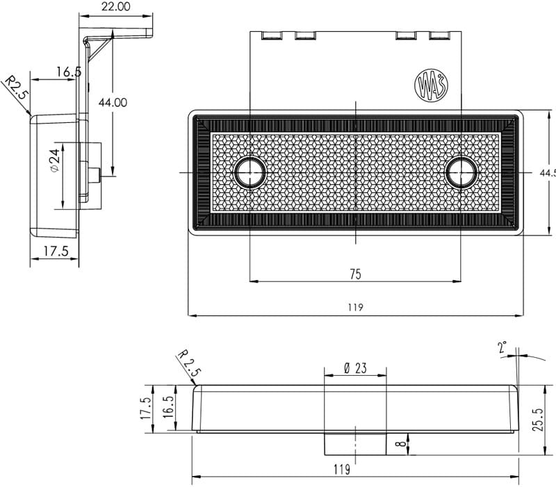 Lampa pozycyjna przednia biała uniwersalna odblask WAS1417