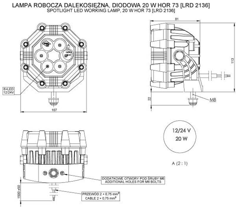 Lampa robocza dalekosiężna 20 W led LRD2136