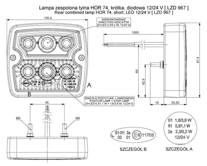 Lampa tylna zespolona trzyfunkcyjna diodowa LED Horpol LZD967