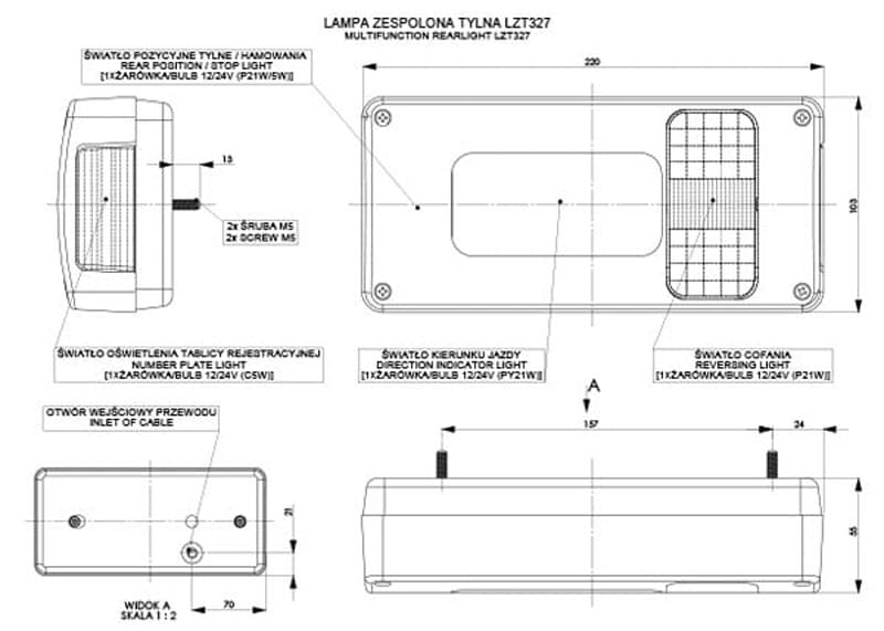 Lampa zespolona tylna z białym kierunkowskazem lewa żarówkowa LZT327