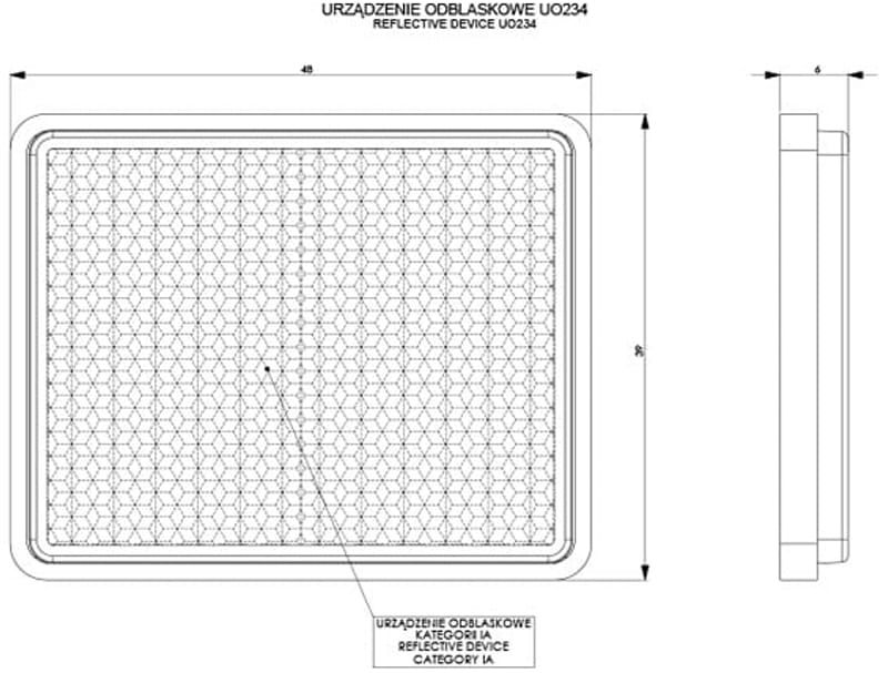 - Powierzchnia odblasku o wymiarach 38x47 mm