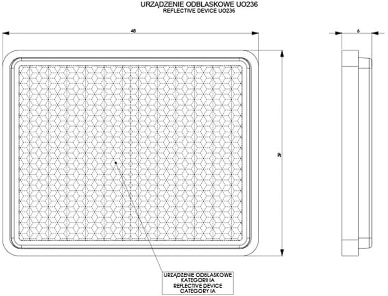 - Powierzchnia odblasku o wymiarach 38x47 mm