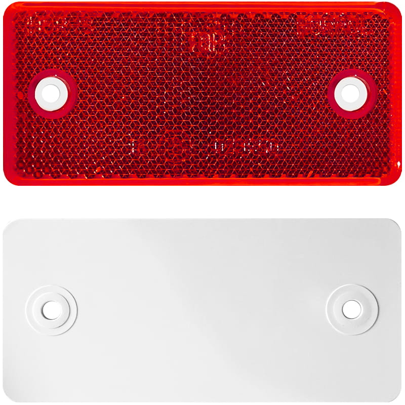 Odblask ozdobny czerwony prostokątny tylny z otworami uniwersalny
