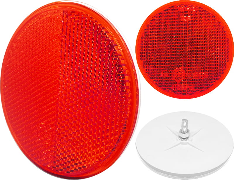 Odblask ozdobny okrągły czerwony z śrubą zestaw 4 szt tylne