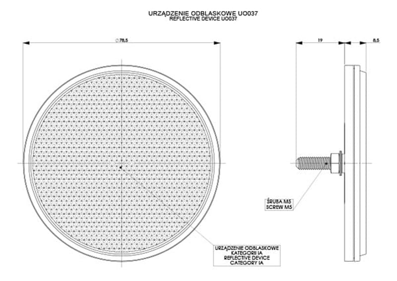 - Powierzchnia odblasku o średnicy 75 mm