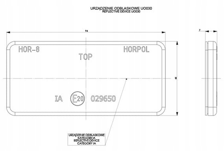 - Powierzchnia odblasku o wymiarach 44x94 mm