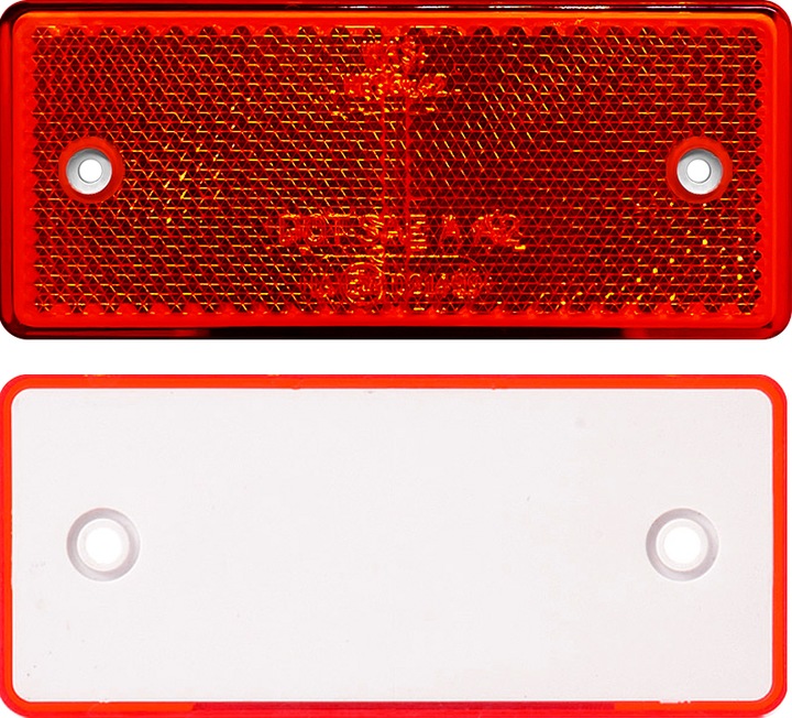 Odblask prostokątny z otworami na śruby czerwony trwały