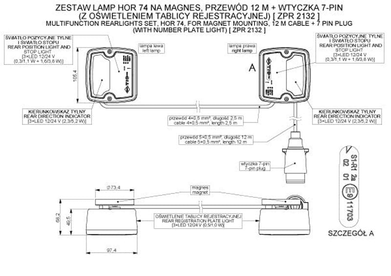 Zestaw lamp zespolonych przewód 12m na magnes ZPR2132