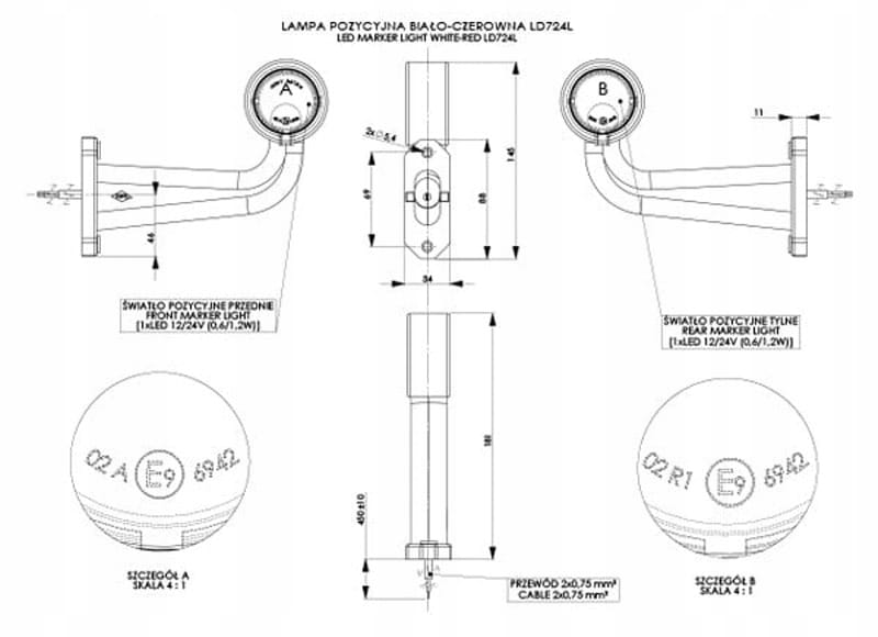 - Przewód: 2×0,75 mm2; długość przewodu 0,45 m