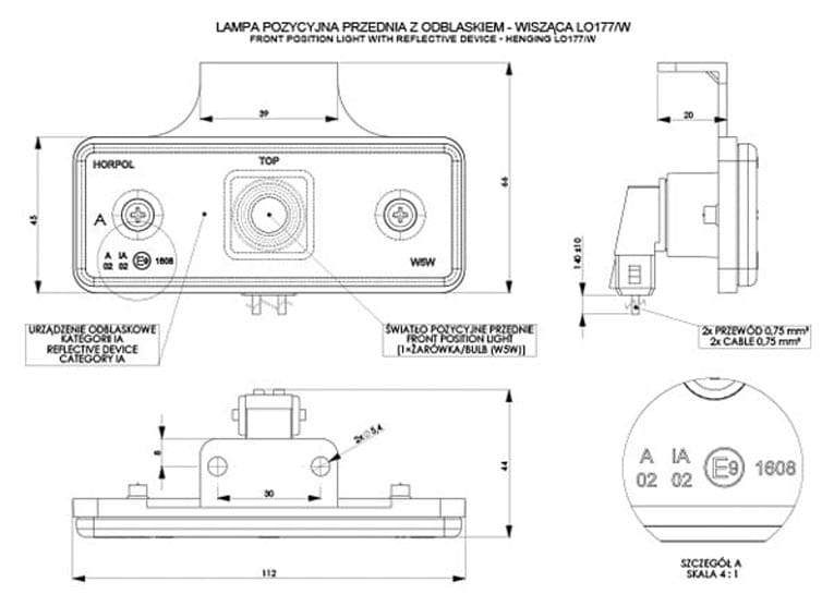 Lampa obrysowa żarówkowa prostokątna 12/24V 5W z odblaskiem
