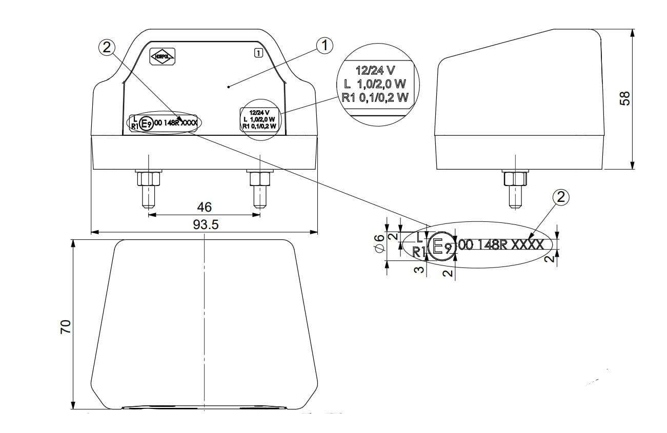 Lampa oświetlenia tablicy rejestracyjnej 12/24V 1/2W IP68 led